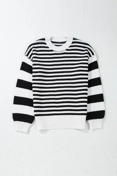 Wavy Stripes Round Neck Long Sleeve Sweater
